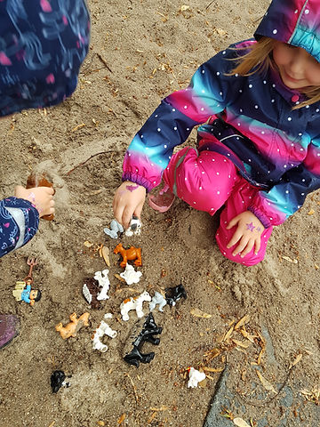 draußen spielen bei jedem Wetter: die Lego-Tiere müssen auch mit